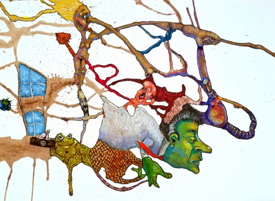 “Kim Klabe came up with this new direction for her work. She uses a 400-pound watercolor paper - which has a lot of texture on it. She lets the liquid dry and then she sort of looks at the shapes and sees sort of what she envisions from that. Sometime it can take the shape of people….animals,” Ganter said.