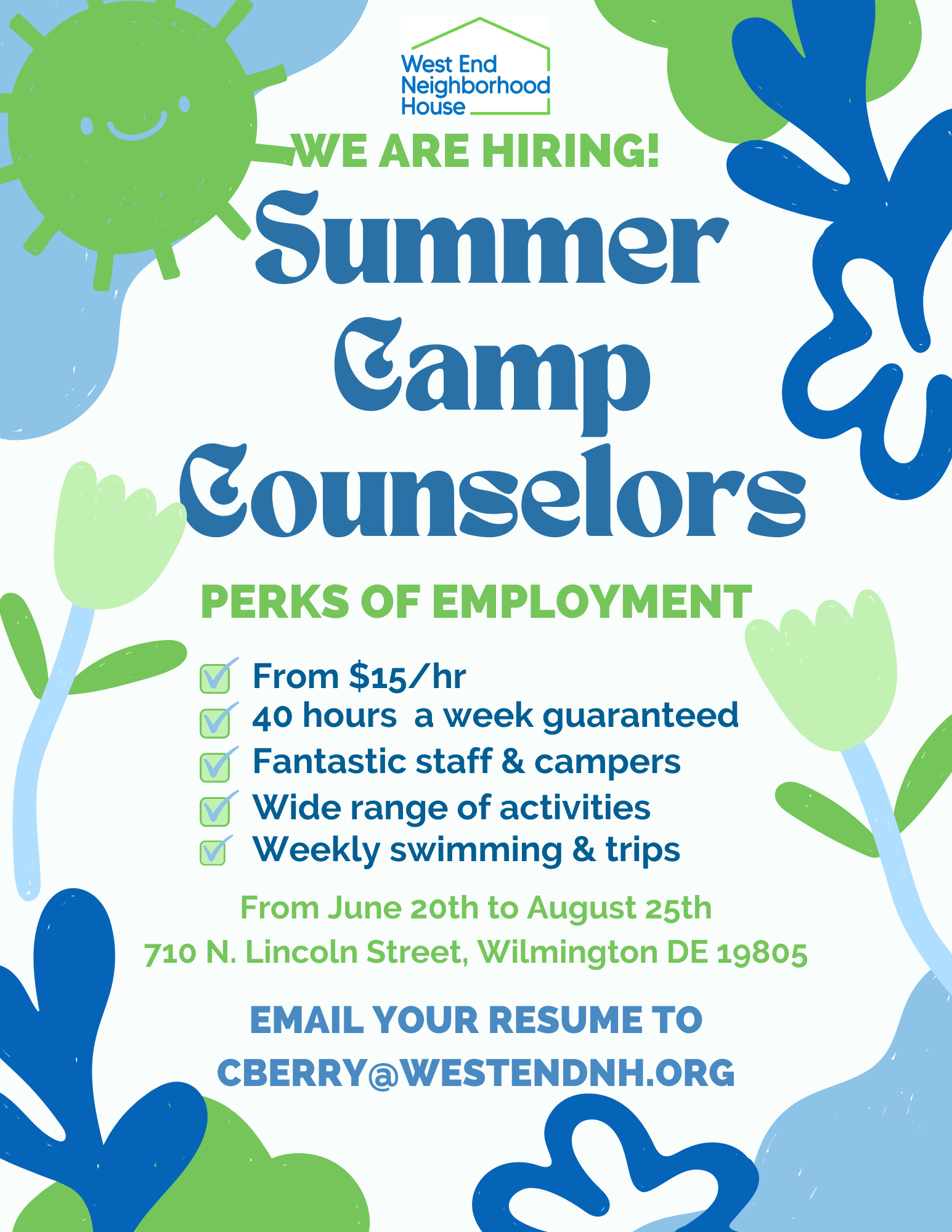 “Typically, we would be set to open June 15, but honestly we’re looking at July 1,” says Kim Anderson, youth development program director at the West End Neighborhood House in Wilmington.
